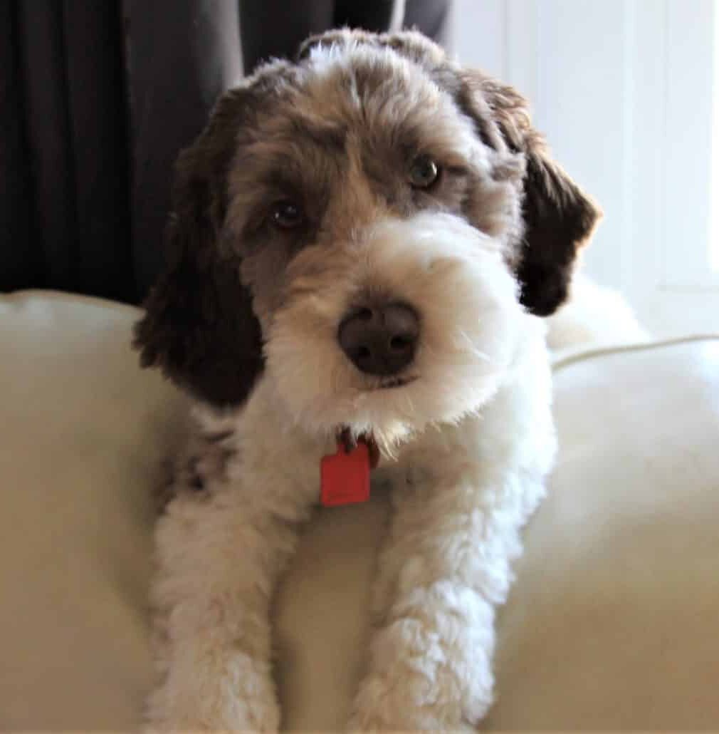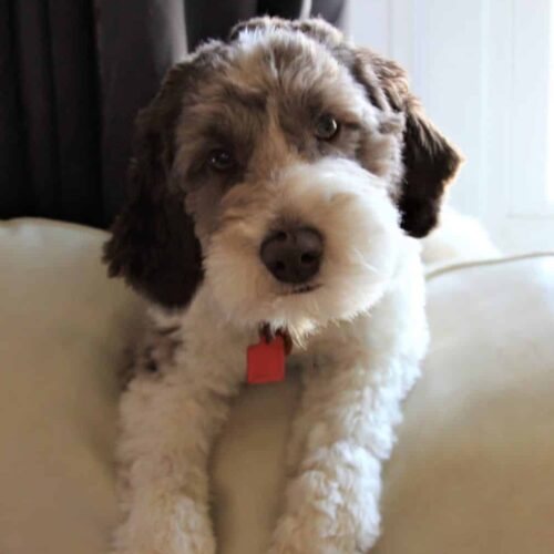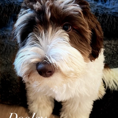 She is a small, mini -20 lbs at maturity. She has a soft wavy fleece, non-shedding, allergy-friendly, no odor coat. Super intelligent, loving companion, and cute as a bug. Both parents are Parti Australian Labradoodles, multigenerational F1b, and are fully health tested.
