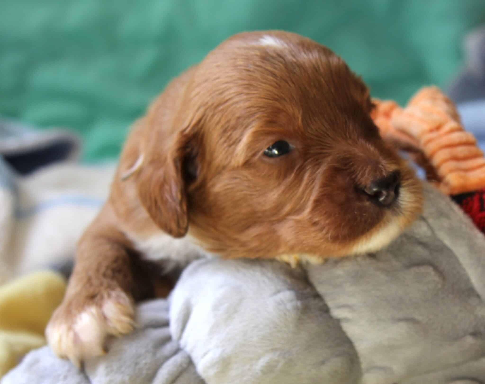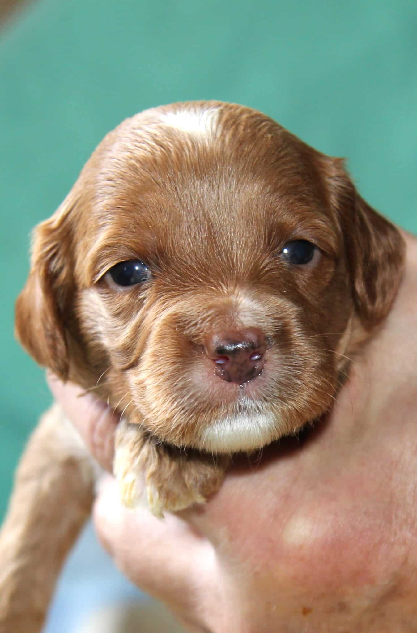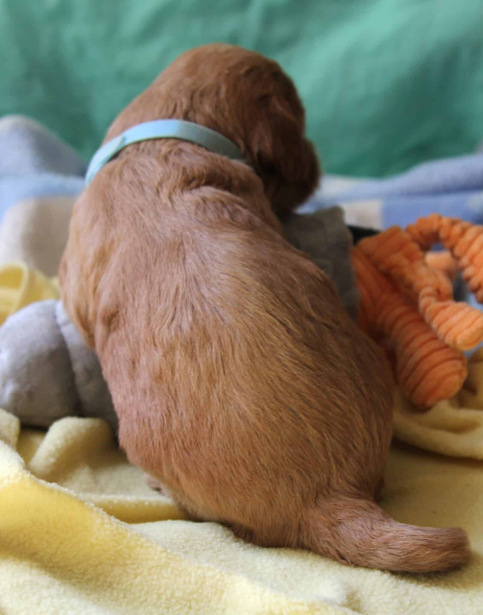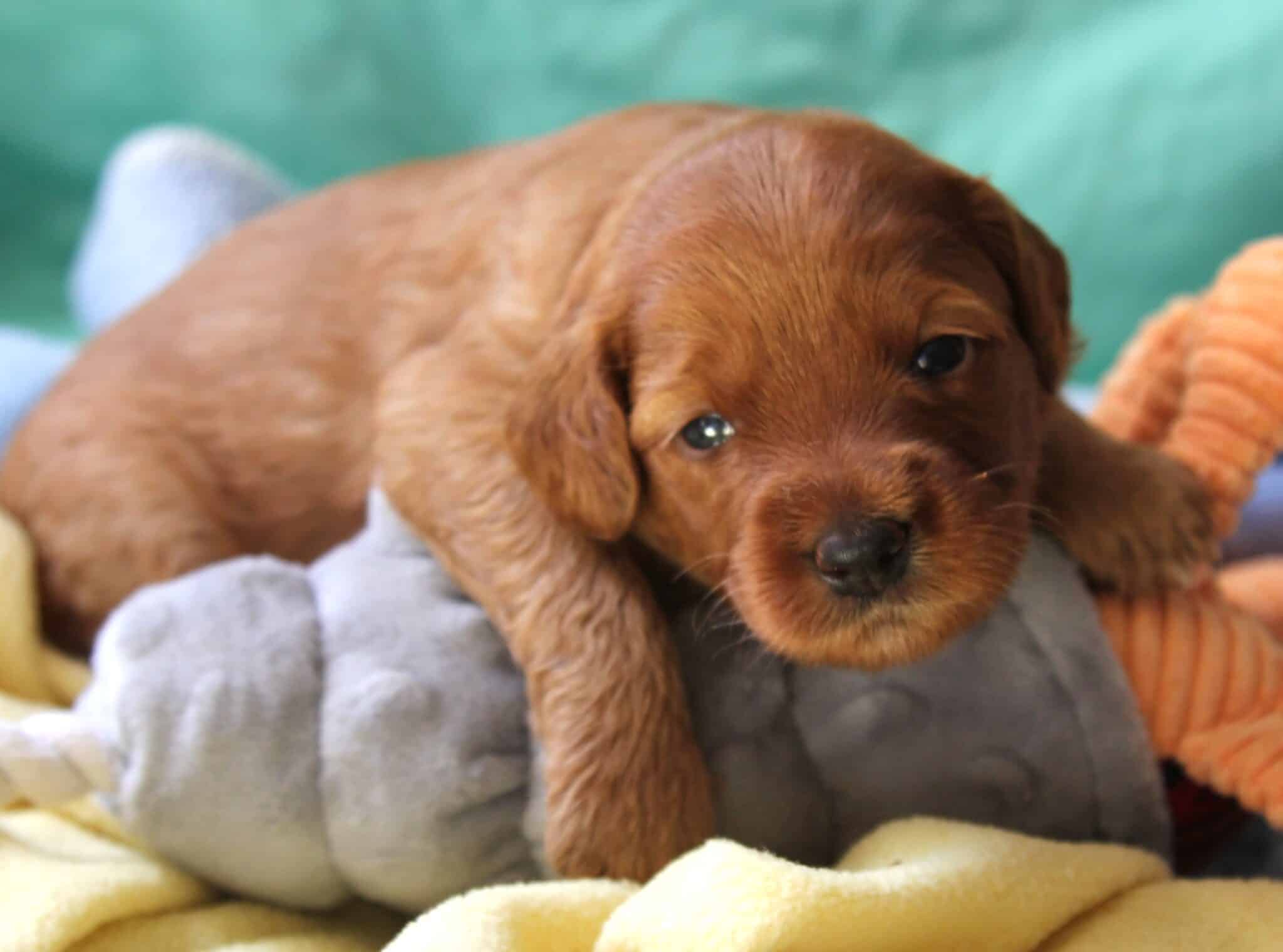 Medium (30-40 lbs) 18 inches at the withers at maturity. Both parents are registered F1b Multigenerational Australian Labradoodles ; Soft wavy fleece, non to low shedding, no odor, allergy friendly coats. (Please note the silky soft straight/wavy hair) A rainbow of reds, golden reds to red reds, some with white markings; adorable, playful, and will be well socialized, early house trained, use pet doors and stairs and love everyone, human and canine alike. Born early 09/11/ 2025. They will have their immunizations, microchip, veterinarian health check, and ready for their new families the last week of October/ first week in November Priced $3500