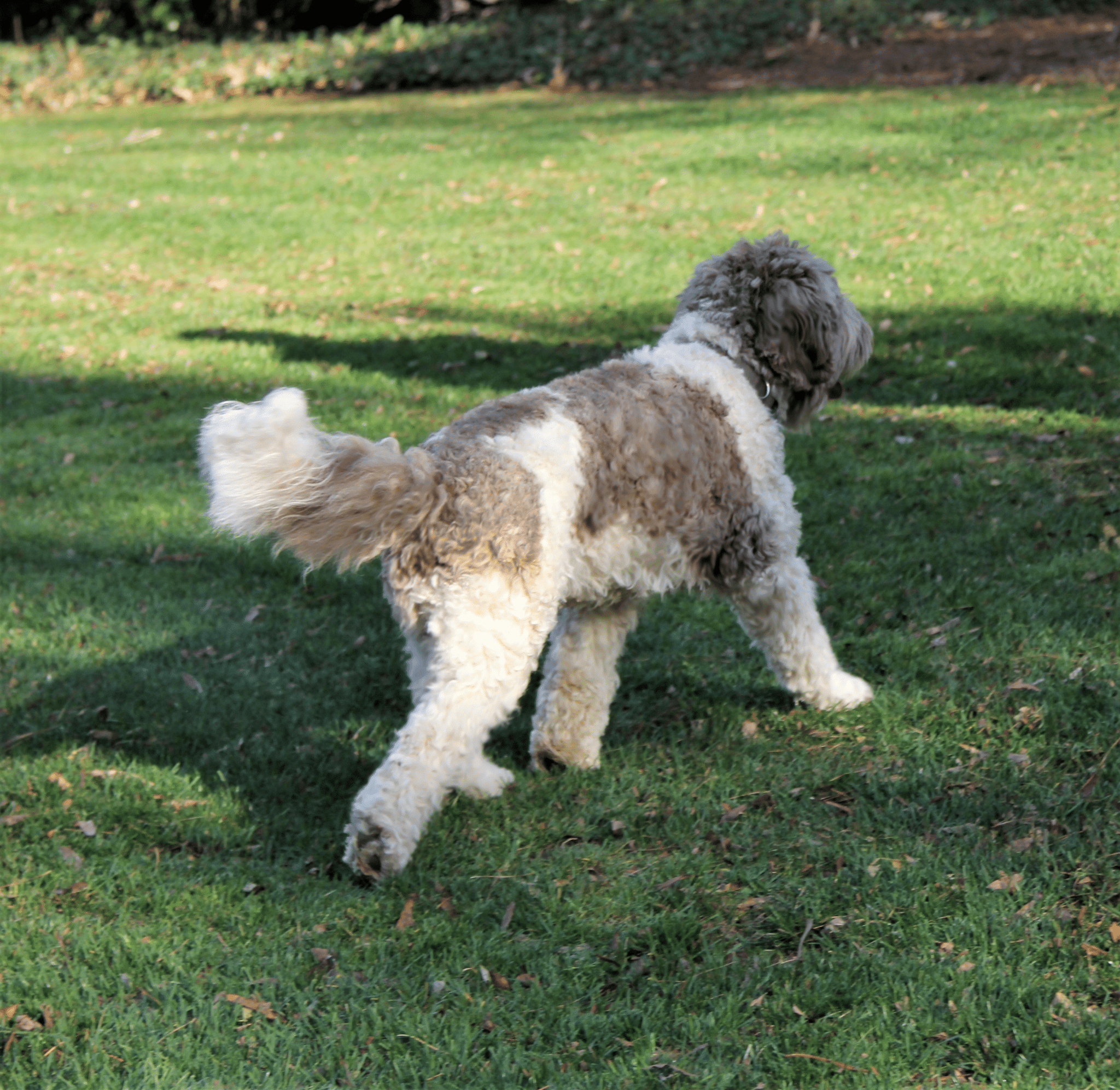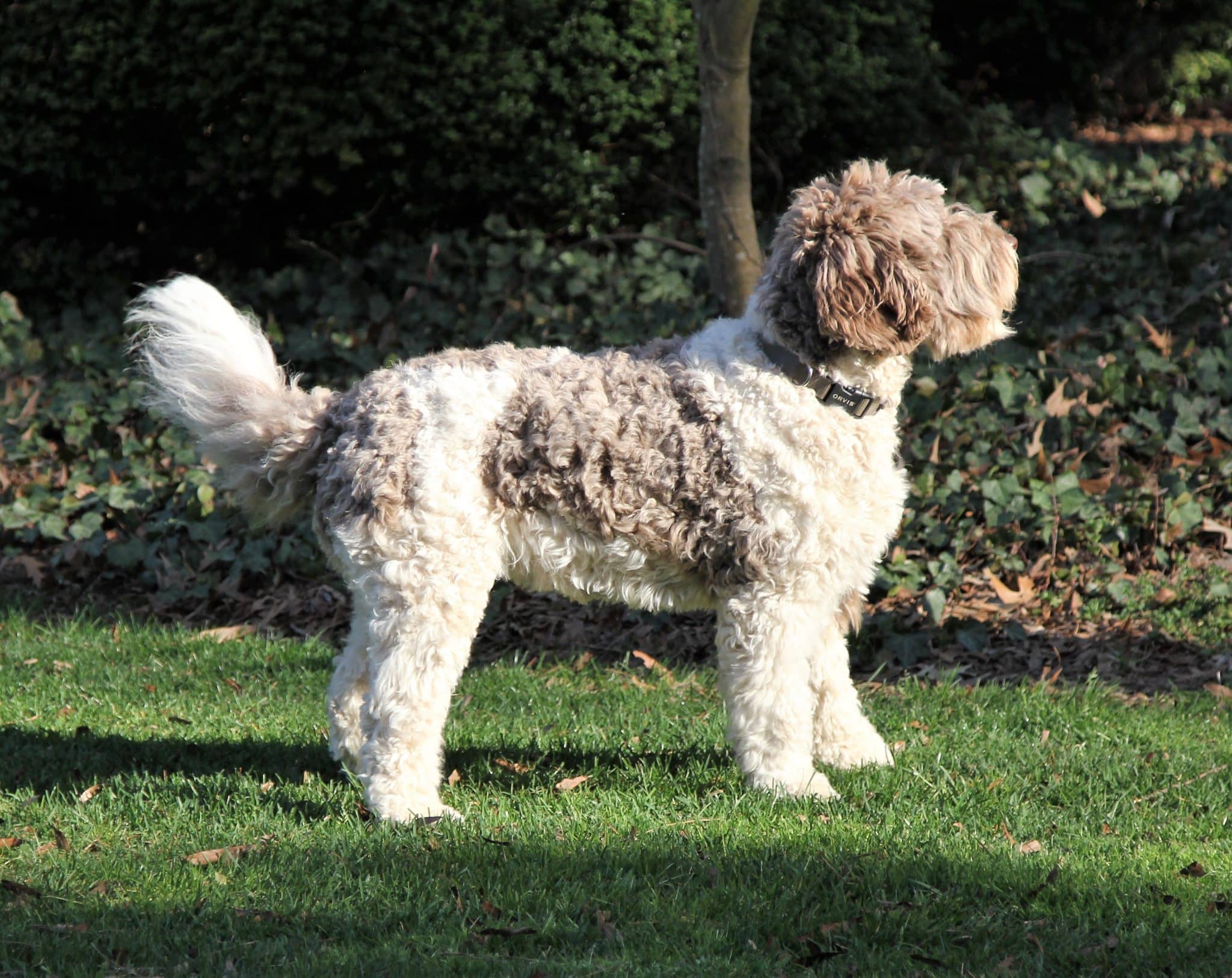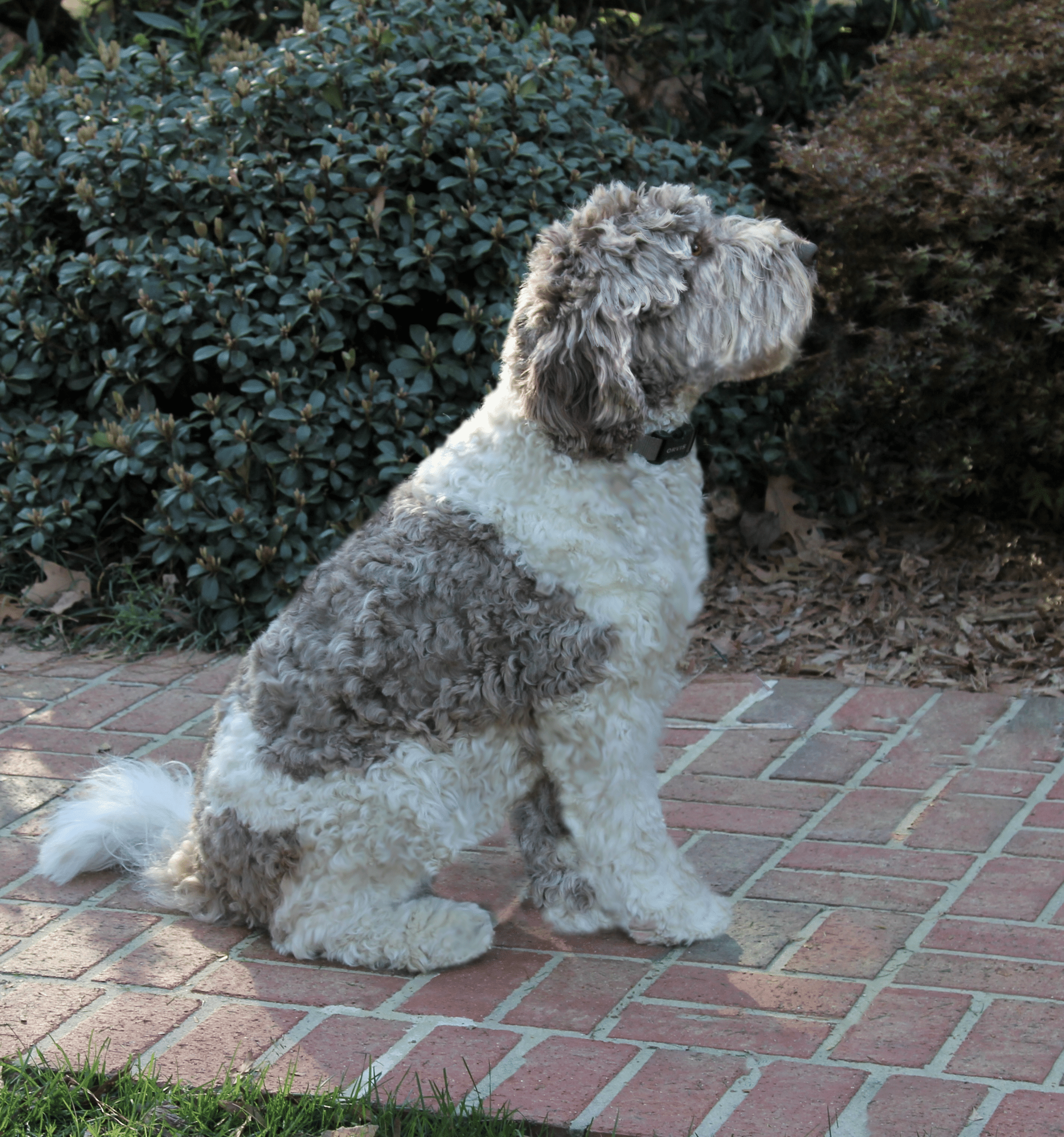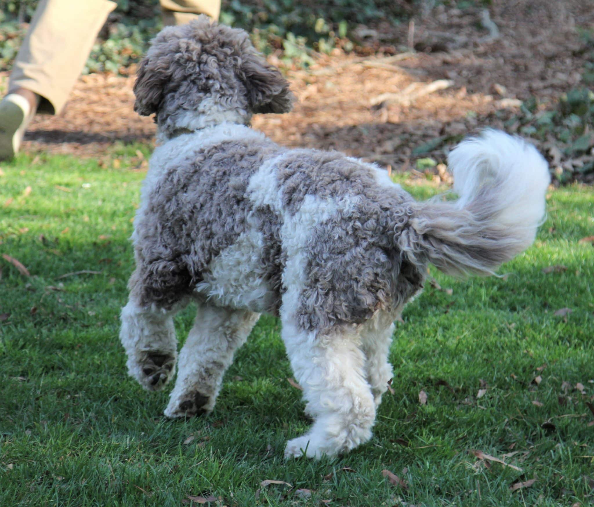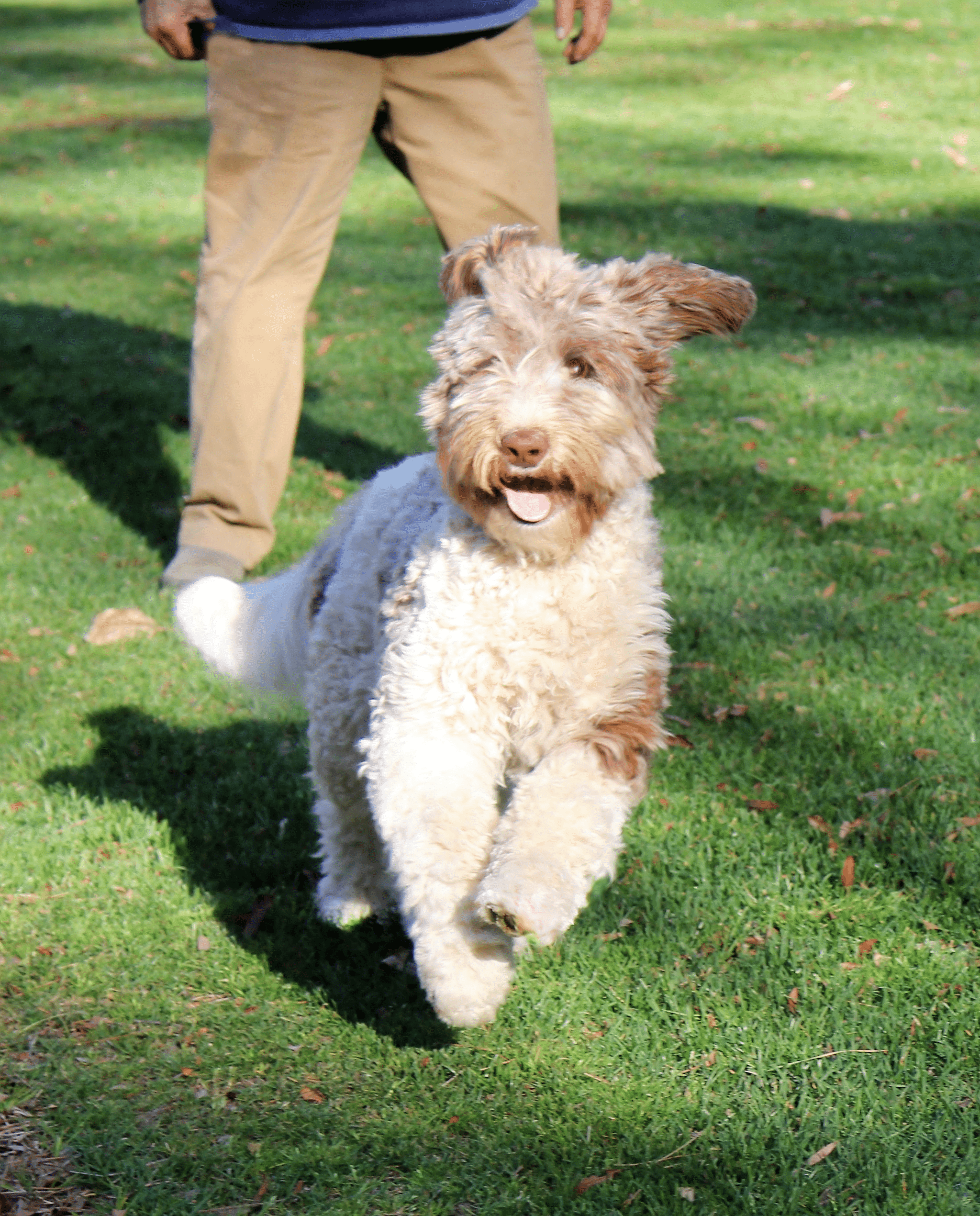 Penn lives here in Yorktown with us. She is a Standard ‘café au lait’ and white Parti Australian Labradoodle with a wavy fleece coat. All of our parents and their puppies are allergy friendly, non- shedding and no odor. Penn is sweetness herself and a beauty. Her structure and agility is as good as it gets- watching her run and play is poetry in motion. Penn is just plain happy, exuberantly happy- loves the water, boats, chasing balls, and life. She adores everyone and is the poster girl for the perfect family companion!