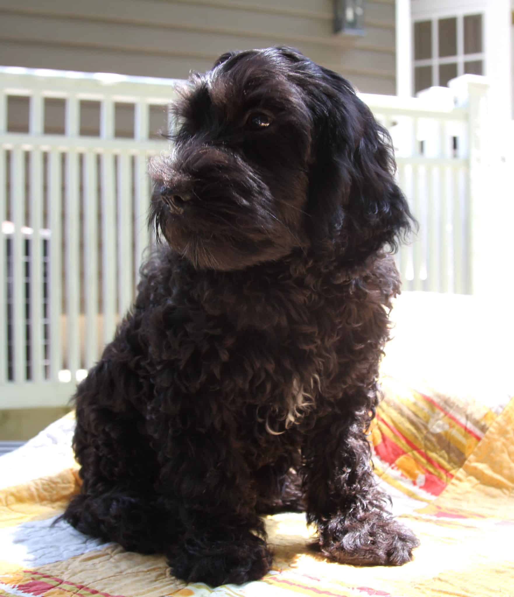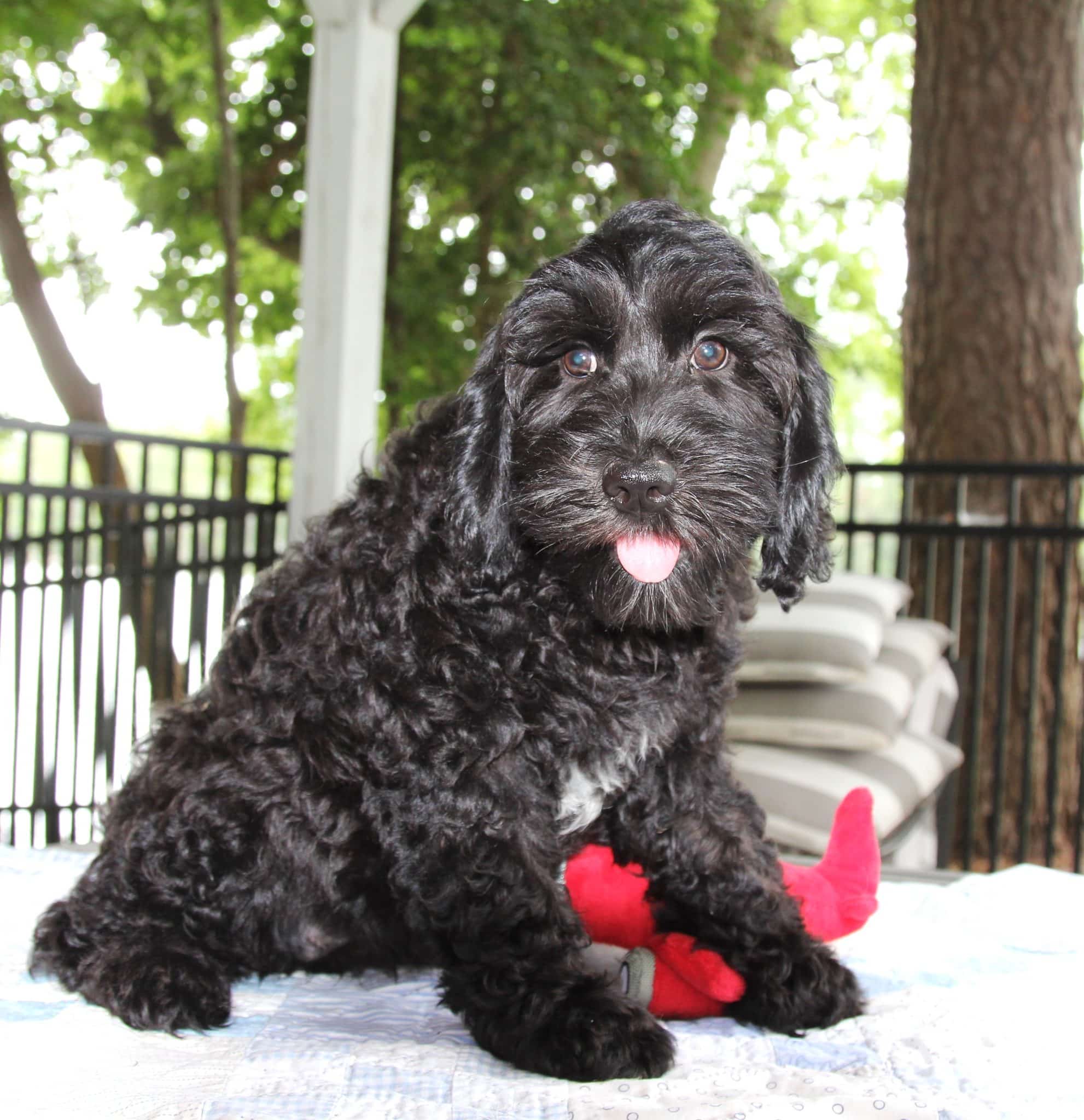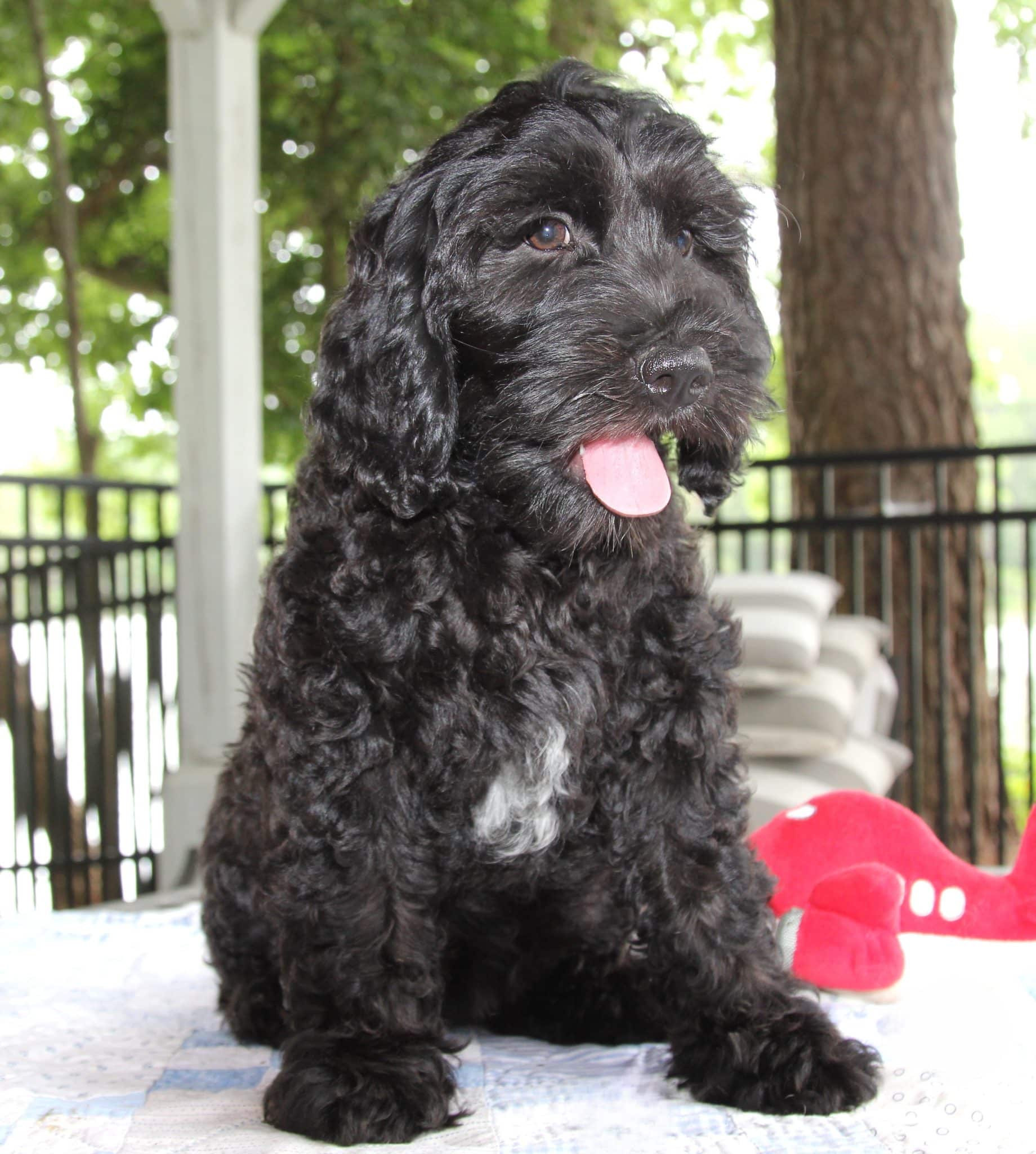 Dixie lives with us here in Tidewater, VA. She is an Australian Labradoodle, multigeneration F1b, Black with a soft wavy fleece coat. All of our parents and their puppies are allergy friendly, non-shedding and no odor. Dixie is a little girl yes, 26 pounds, yet built like a Retriever, heavy boned and sturdy with excellent conformation. Her agility and beauty is striking. It is a joy to watch her move. She is intelligent and has a calm, loving, gentle demeanor. Throw a ball and she’ll forever thank you! Her puppies inherit her sweetness and love for humans. She is one very special companion that is adored by everyone she meets!