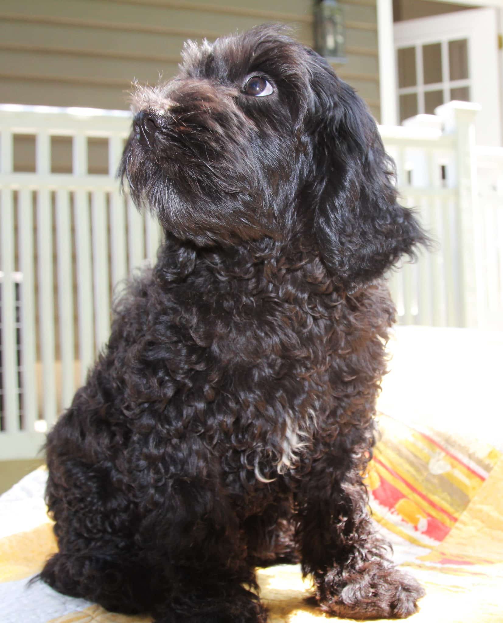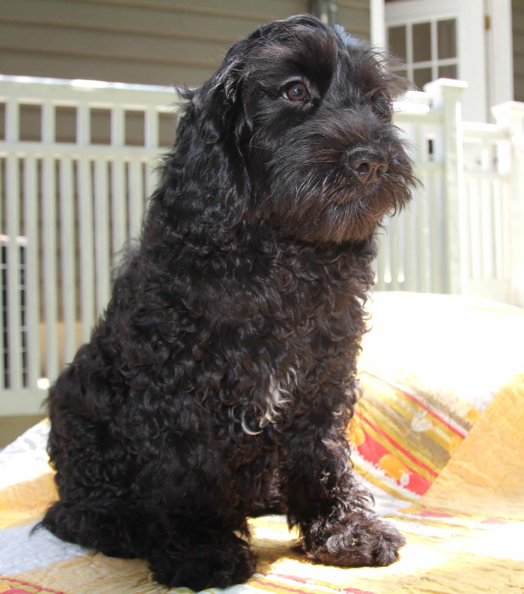 - Color and Coat Type: Black with wavy fleece coat, soft loopy curls